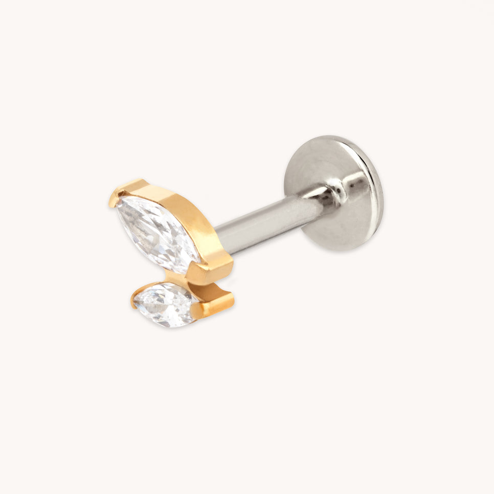 Crystal Double Marquise Titanium Piercing Stud in Gold