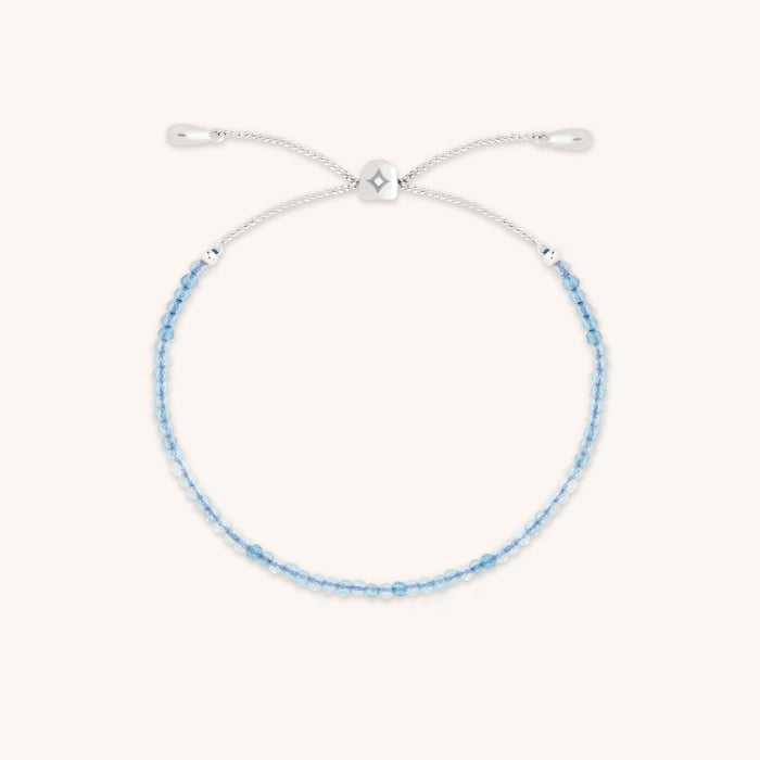 Aquamarine March Beaded Bracelet in Solid White Gold