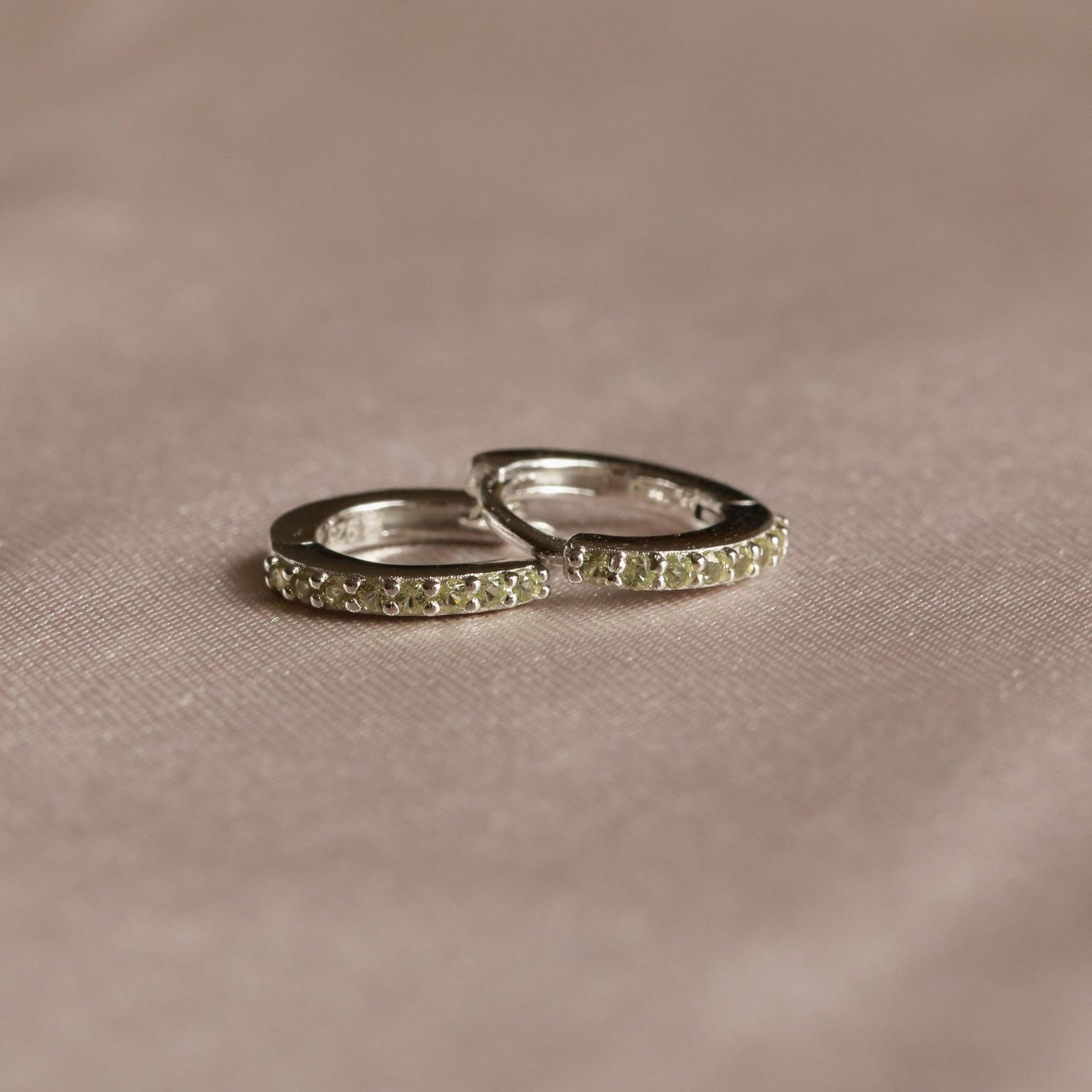 August Birthstone Huggies in Silver with Peridot CZ