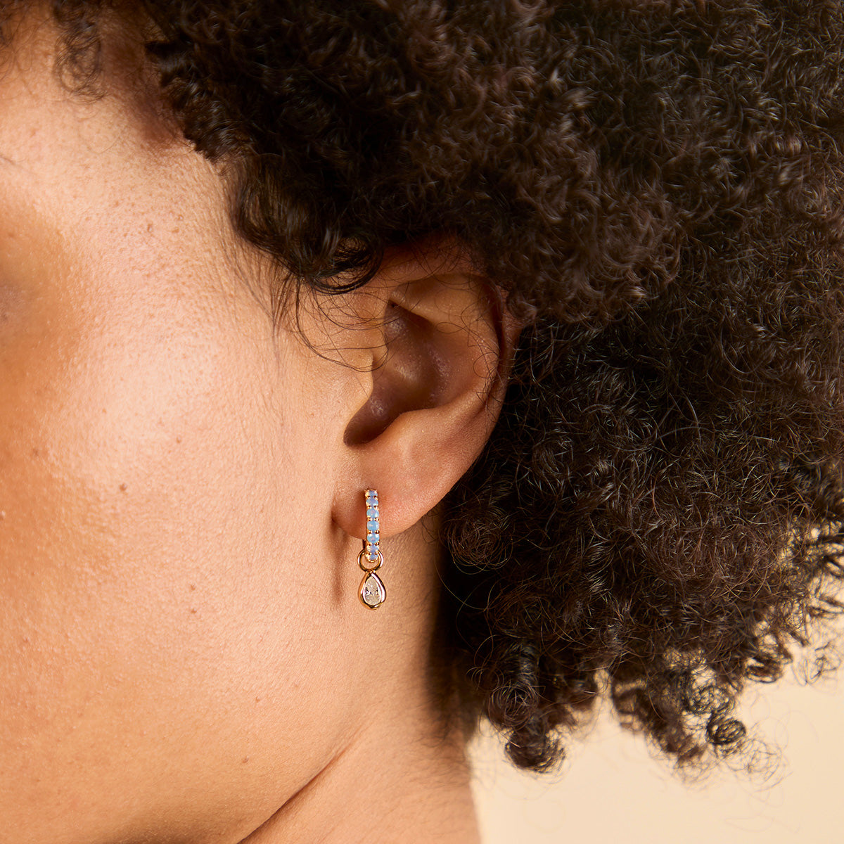 Opal Pear Bezel Huggies in Solid Gold - Pre-order