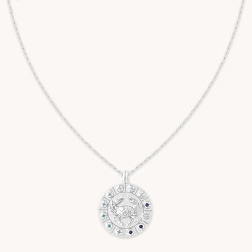 Wear your star sign with pride. The Bold Zodiac Pendants are the ultimate statement, and the main event of any jewellery dish. The big sister to our Zodiac Pendants, this is engraved in the Cancer symbol with blue stones to represent the water element.