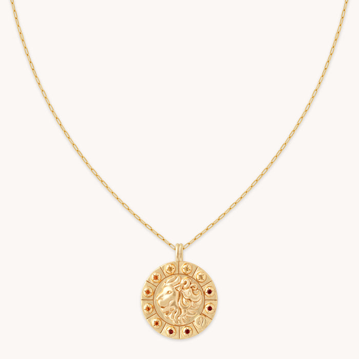 Wear your star sign with pride. The Bold Zodiac Pendants are the ultimate statement, and the main event of any jewellery dish. The big sister to our Zodiac Pendants, this is engraved in the Leo symbol with red stones to represent the fire element.