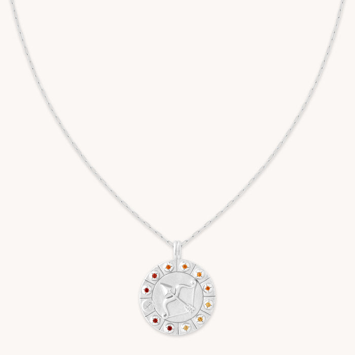 Wear your star sign with pride. The Bold Zodiac Pendants are the ultimate statement, and the main event of any jewellery dish. The big sister to our Zodiac Pendants, this is engraved in the Sagittarius symbol with red stones to represent the fire element.