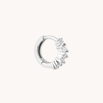 Celestial stacks with out of this world sparkle. Introducing the Celestial Crystal 8mm Hoop in Silver, with a scattering of crystals to elevate any look. Fitting in lobe, forward helix & helix piercings, this single hoop means you can customise your stack and achieve the asymmetrical look.