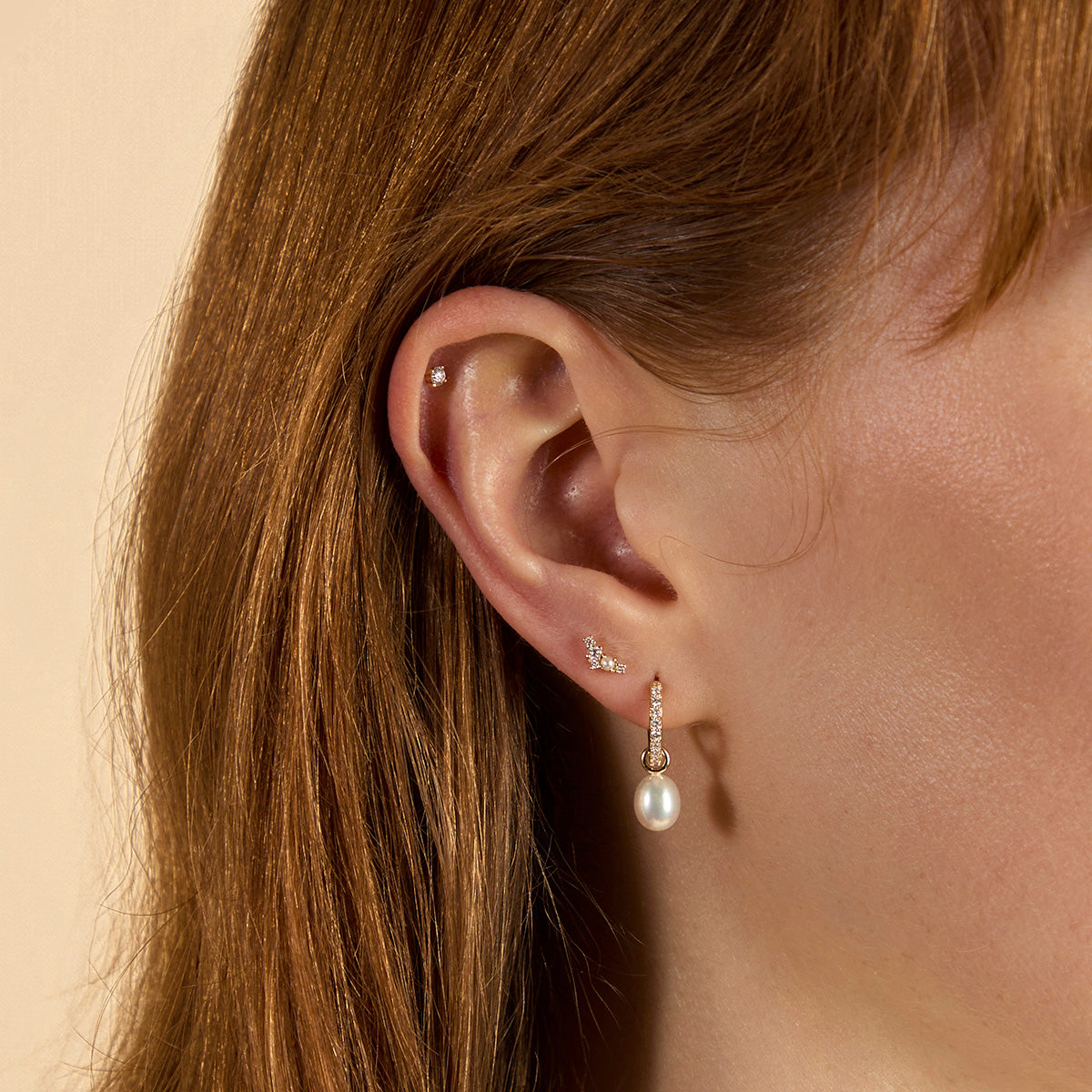 Diamond & Pearl Charm Huggies in Solid Gold