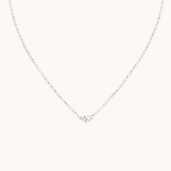 Diamond & Pearl Pendant Necklace in Solid White Gold