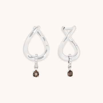 Diamond & Quartz Charm Molten Huggies in Solid White Gold