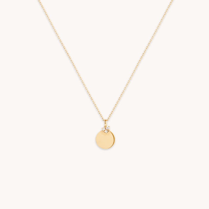 Meet your future heirloom. The Diamond Coin Pendant Necklace in Solid Gold can be engraved with your chosen characters, keeping a special moment, memory or person close to you always.