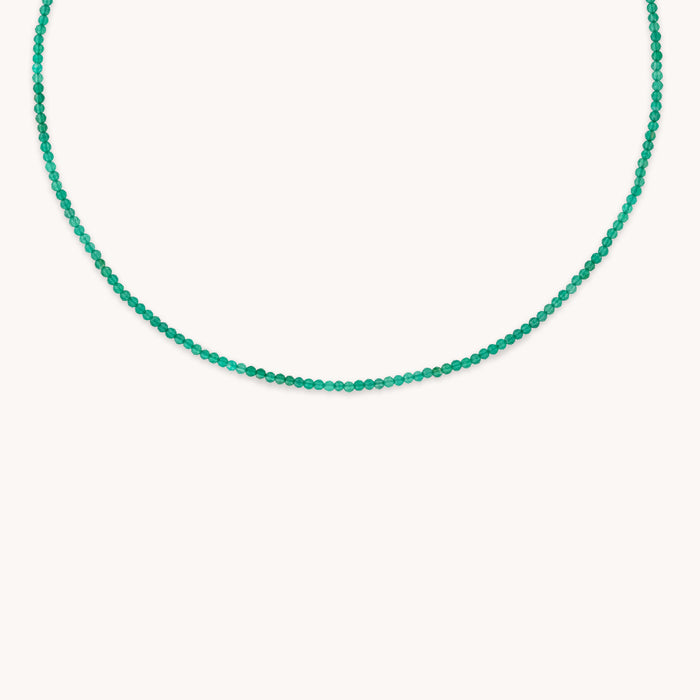Beaded Jewellery - Green Agate Gemstone Necklace in 9k White Gold - Beaded Necklace - Astrid & Miyu