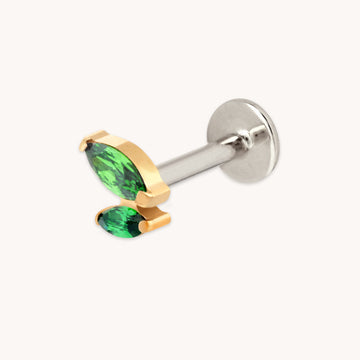 Green Double Marquise Titanium Piercing Stud in Gold-Astrid & Miyu