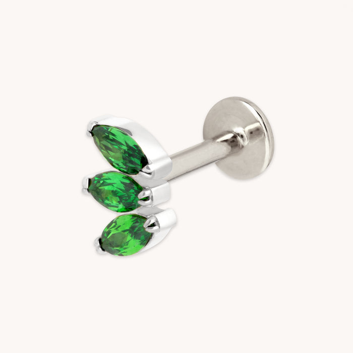 Green Marquise Fan Titanium Piercing Stud in Platinum