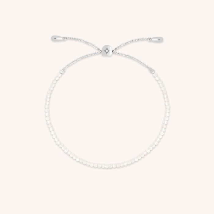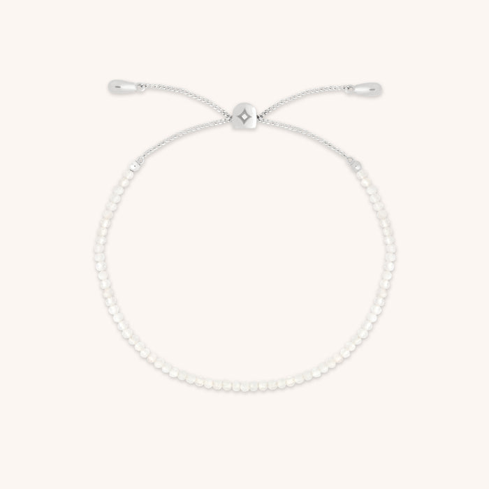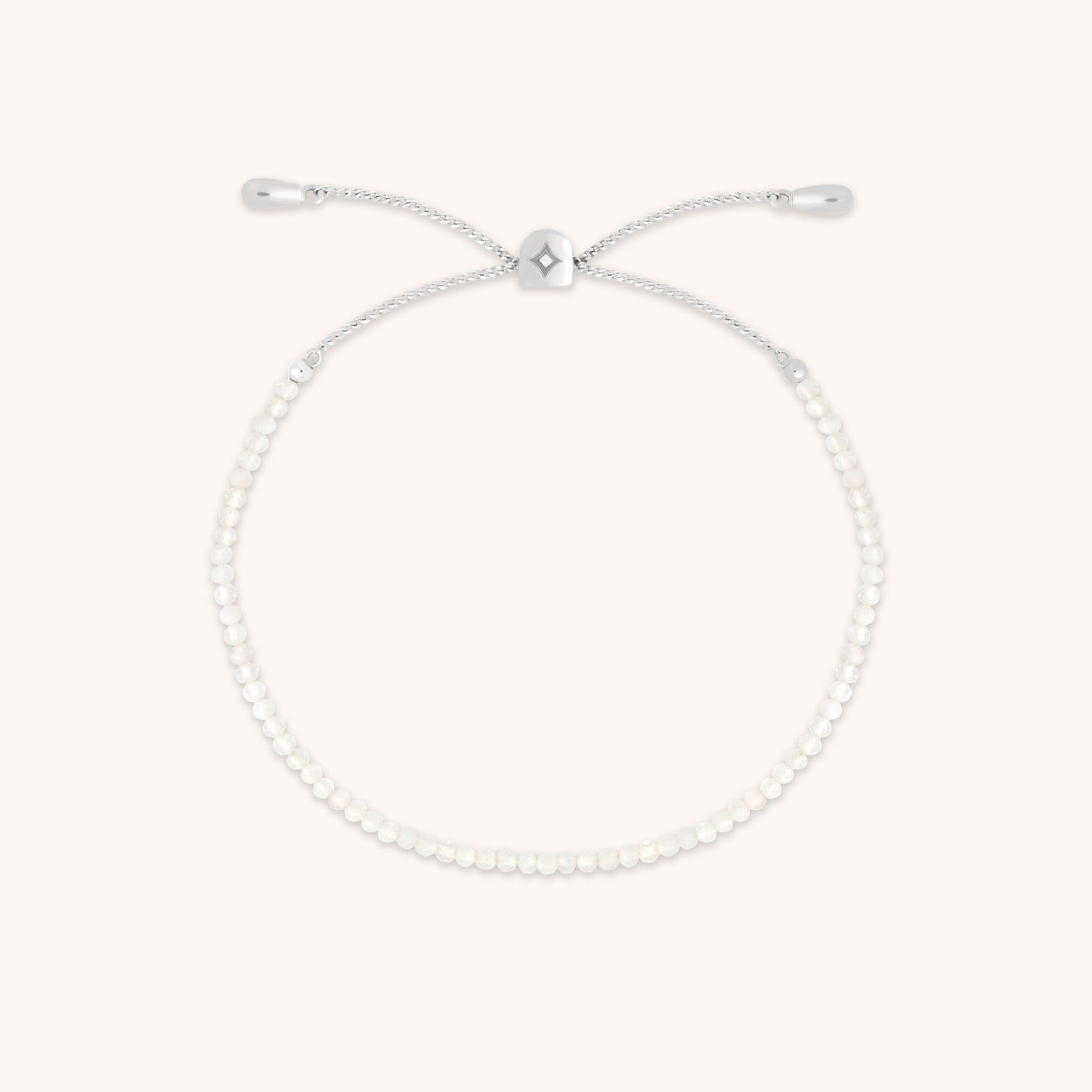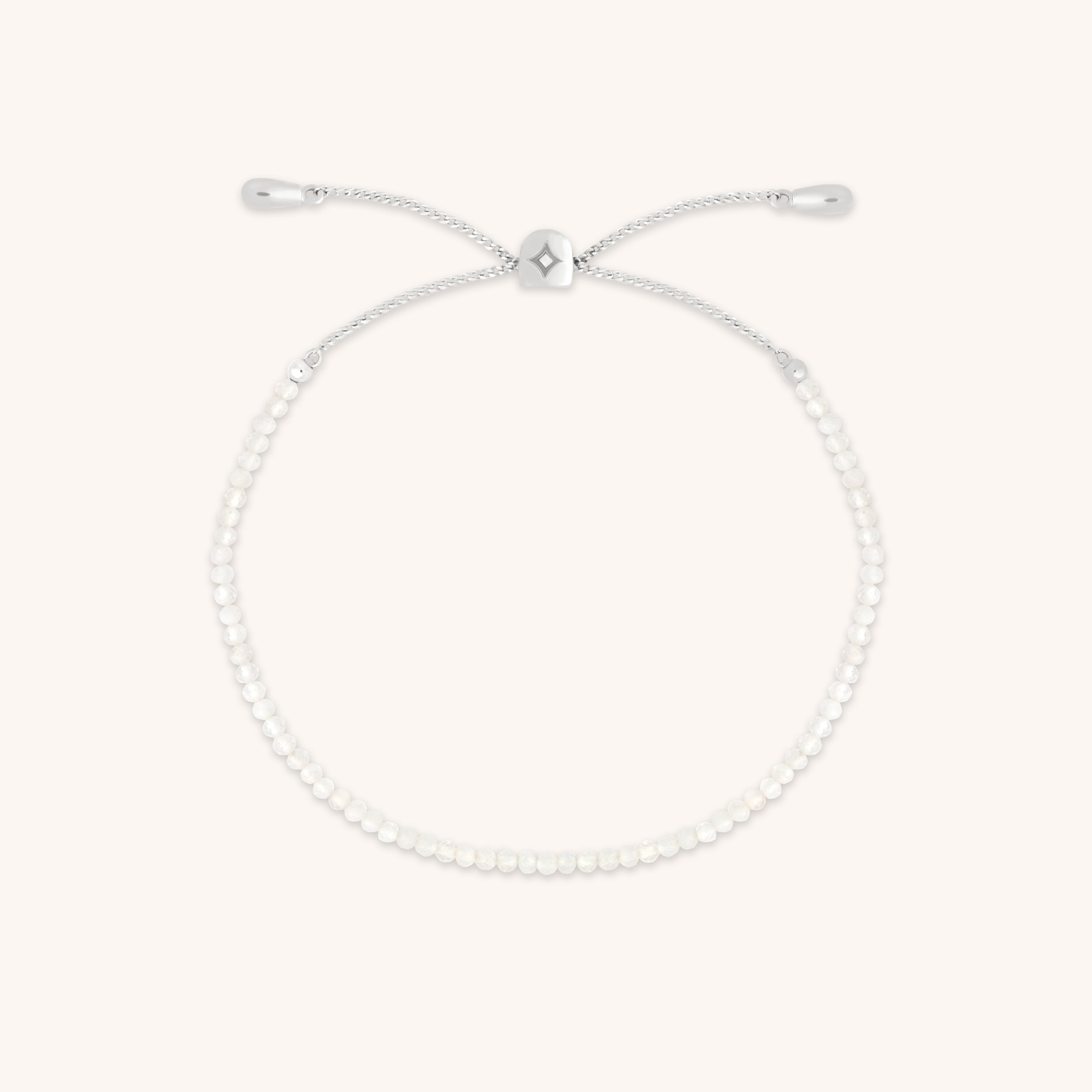 Moonstone June Beaded Birthstone Bracelet in Solid White Gold
