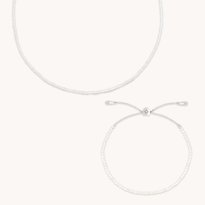 Moonstone June Beaded Birthstone Necklace in Solid White Gold