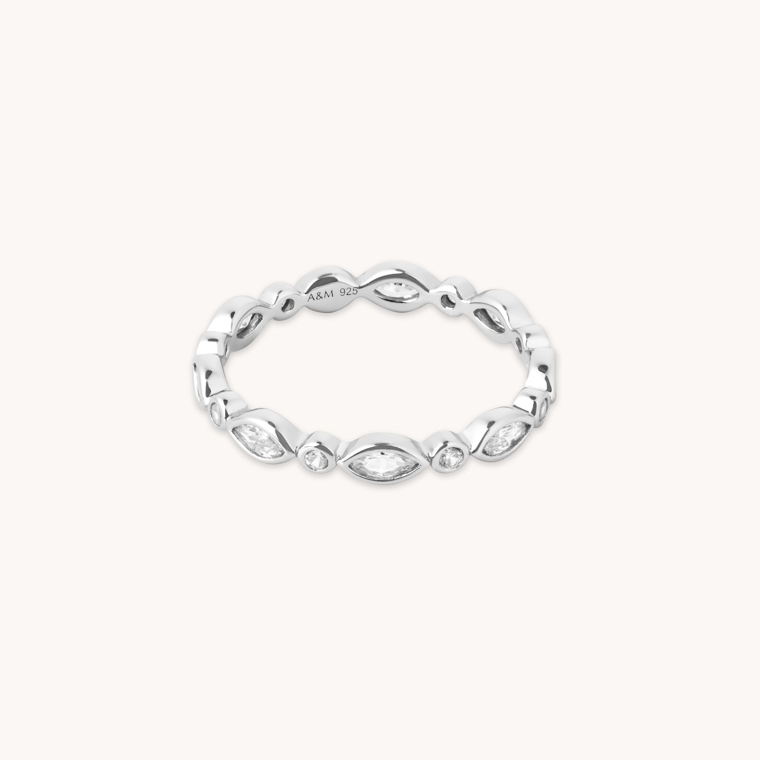 Navette Crystal Band Ring in Silver