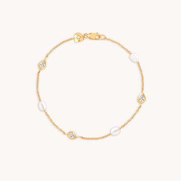 Pearl & Crystal Charm Bracelet in Gold