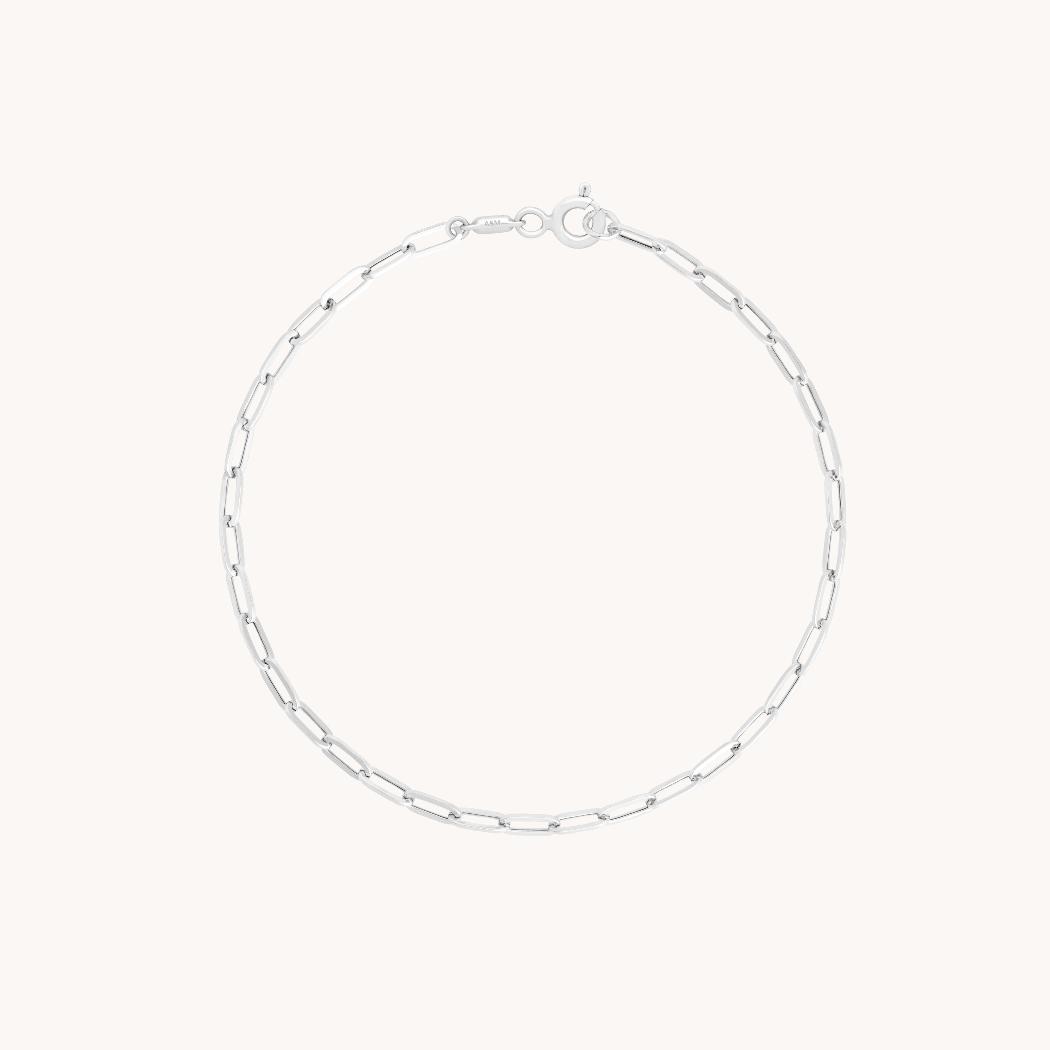 The missing link in any wrist stack - meet the Piccadilly Chain Bracelet in Solid White Gold. This paperclip chain is the ultimate base of any collection, crafted from durable solid 9k gold to wear all day and every day (even while swimming and working out).