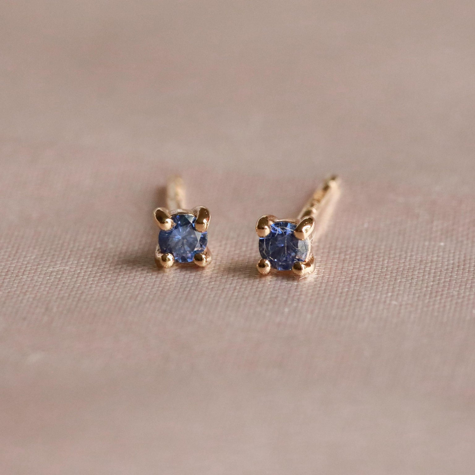 September Birthstone Stud Earrings in Gold with Sapphire CZ