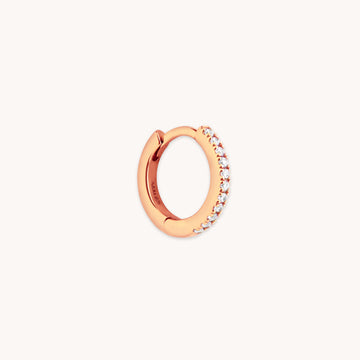 A sparkling addition to your stack ~ the Jewelled Hoop in Rose Gold is the perfect way to give your piercings the sparkle they deserve. Fitting in lobe, forward helix & helix piercings, this individual hoop means you can customise your stack and achieve the asymmetrical look.