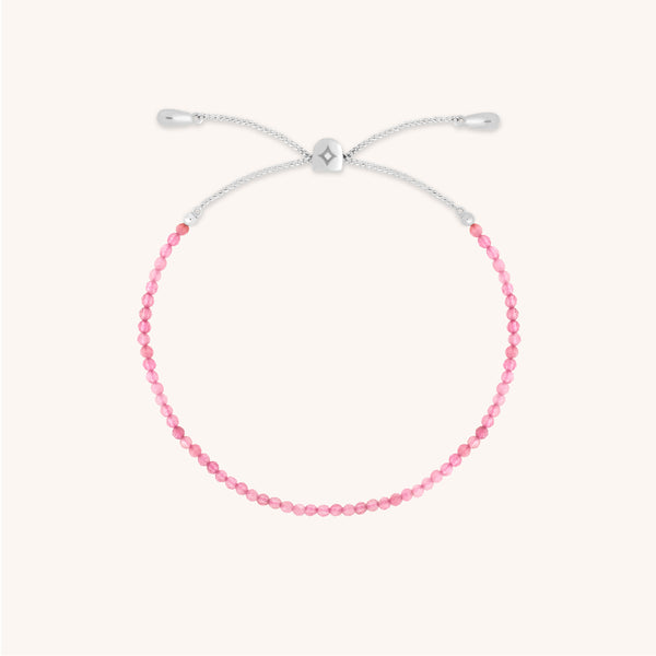 Agate May Beaded Birthstone Bracelet in Solid White Gold