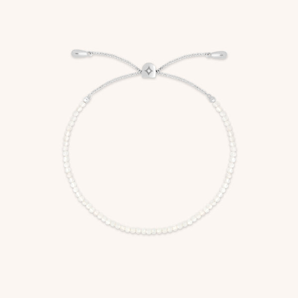 Moonstone June Beaded Birthstone Bracelet in Solid White Gold