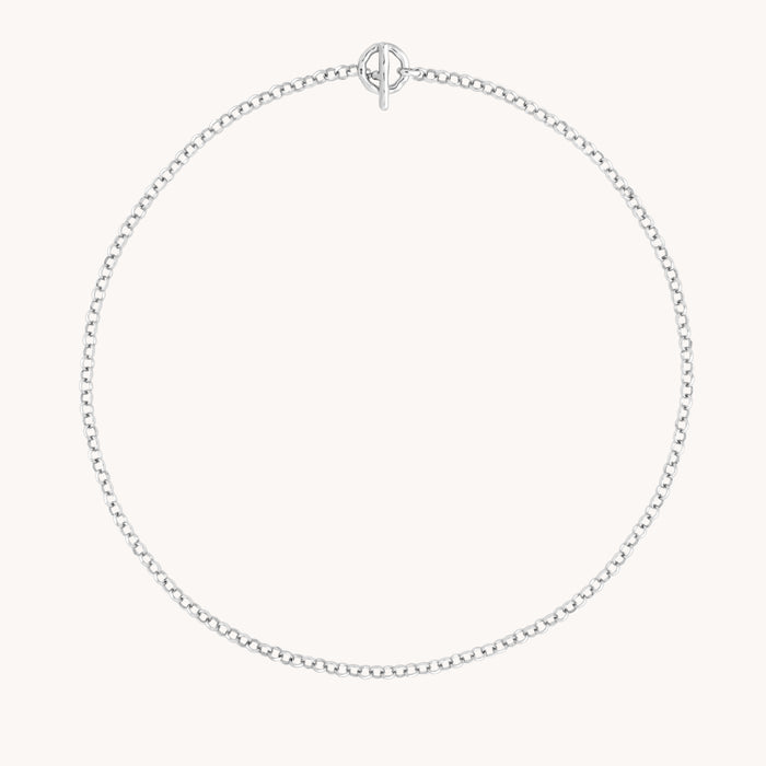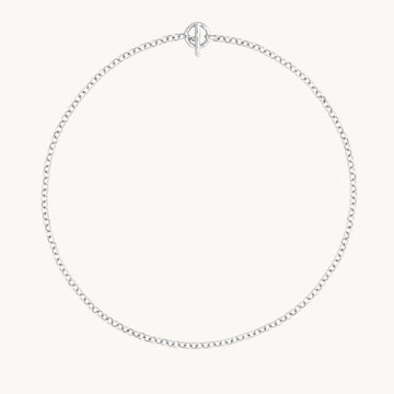 Crafted from small circular links, the T-Bar Rolo Chain Necklace in Silver is a timeless design, elevated by our molten T-Bar clasp. Both functional and eye-catching, the clasp serves as a striking focal point on its own, or personalise your look by adorning it with Clip Charms.