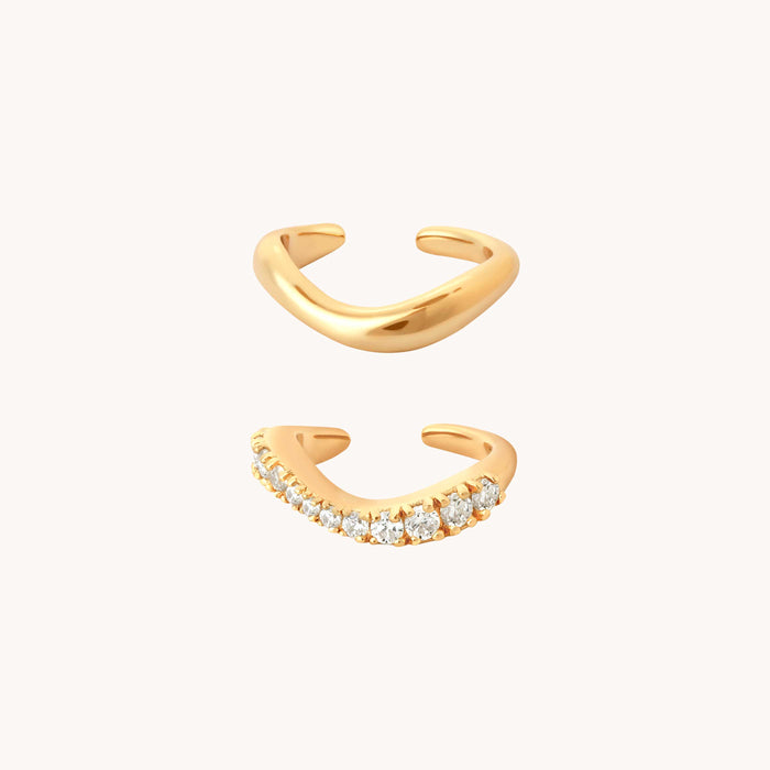 No piercing? No problem. The Wave Cuff Gift Set in Gold includes our Wave Crystal Ear Cuff & Wave Ear Cuff, which fit seamlessly together for a statement look. Add to your collection to elevate your ear stack.