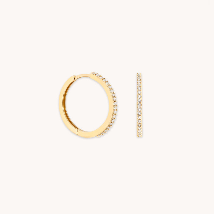 White Topaz Pavé Hoops in Solid Gold